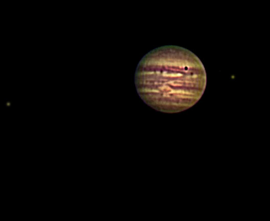 Tranzit sence Jupitrove lunice IO preko Jupitra 18.07.2006. Desno se vidi lunica Io levo pa lunica Ganimed. Na sliki se lepo vidi GRS in GRS junior.