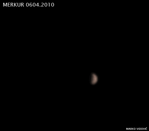 Planet Merkur posnet 30.03.2004 ob 20.19 uri z afokalno metodo s teleskopom Meade lx 200 in digitalni fotoaparat Canon PSa40
