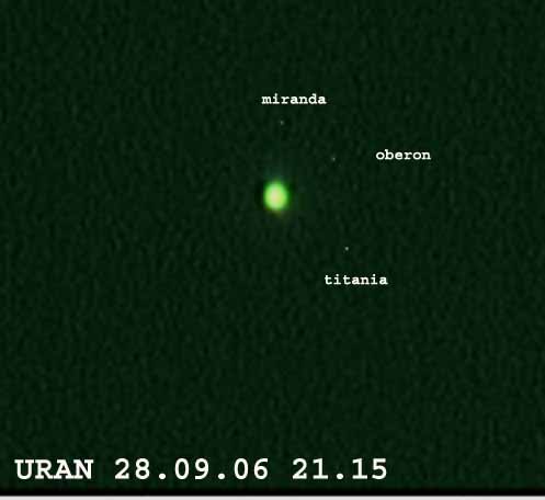 PLANET URAN IN NJEGOVE LUNE (Vse fotografije so copyright @ by Marko Vidovič) Planet URAN posnet 28.09.2006 z teleskopom Meade AR6 in 3 x barlow, Atik CCD kamera